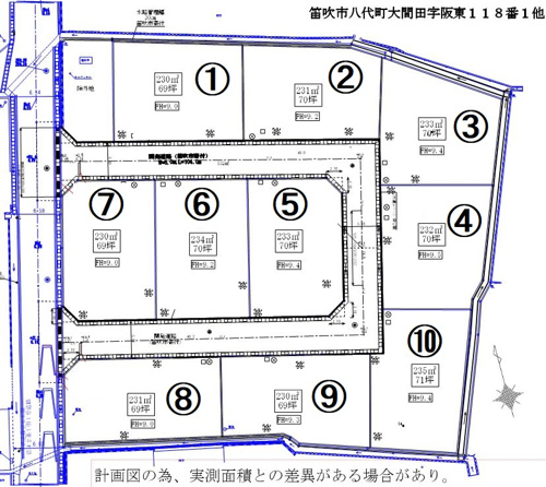 笛吹市八代町大間田にある全10区画の分譲地。