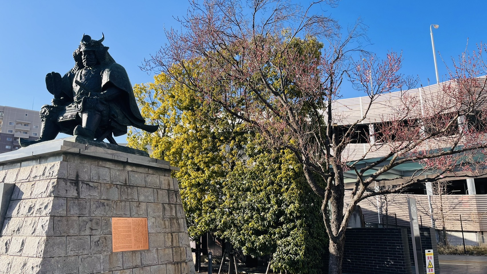 甲府駅南口にある武田信玄公像。