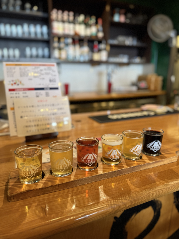 甲府の地ビール、「アウトサイダーブルーウィング」を堪能できます。